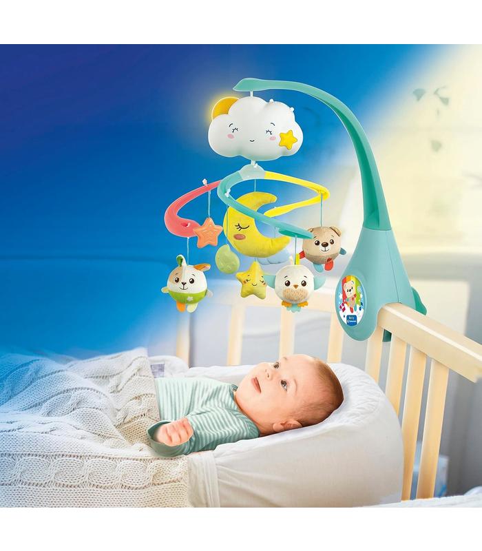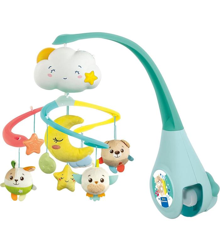 La suave y lenta rotación de los personajes, hechos en tela suave, llama la atención del bebé; y favorece su desarrollo visual, a la vez que lo acompaña suavemente hacia el sueño.