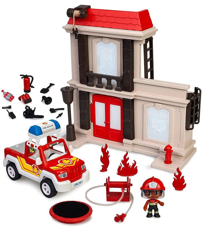 Los bomberos de Pinypon Action tienen que apagar un peligroso incendio. ¡En la mansión el fuego está fuera de control! Las ventanas y ladrillos rompen y se caen tras la explosión Incluye la manguera grande con soporte. El edificio también tiene escaleras de emergencia plegables y la tirolina móvil para que el bombero pueda subir a la mansión. Escapa de la llamas y salta del edificio a la colchoneta! El jeep de los bomberos tiene luces intermitentes de emergencia que se pueden colocar en otros coches de Pinypon Action y un compartimento para los accesorios. Incluye una figura de bombero y muchos pequeños accesorios. Edad recomendada: + 4 años. No recomendable para menores de 3 años, ya que contiene piezas pequeñas que podrían provocar asfixia en caso de ser ingeridas por el niño/a.