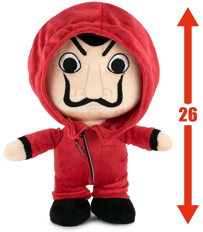 Peluche del ladrón disfrazado con el famoso traje rojo y la máscara de Dalí de La Casa de Papel. Producto Original Netflix. 100% original, nuevo y con etiqueta de licencia oficial