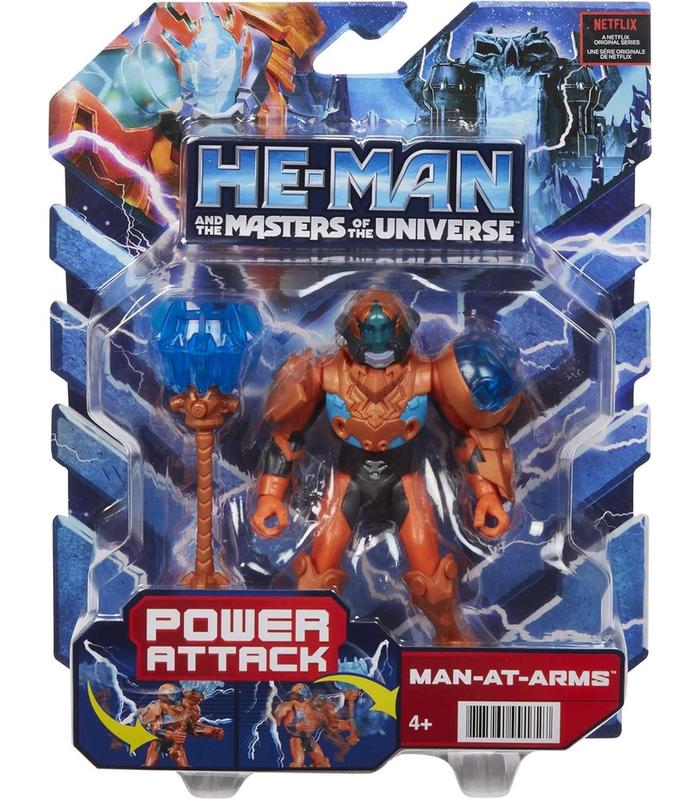 Revive las aventuras de Man-at-Arms, con su función de enganche de muelle que reproduce los movimientos del personaje de la serie de televisión: basta con tirar y soltar