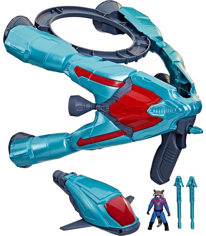 CON LANZAPROYECTILES: La nave incluye una figura de Rocket a escala de 5,5 cm y 3 proyectiles para que los lances y te diviertas a lo grande en la galaxia