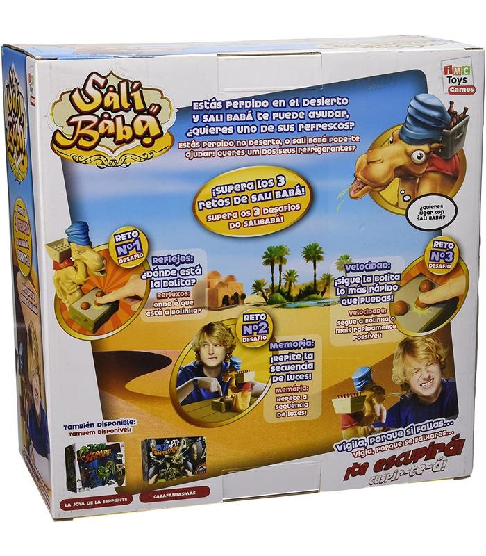 En medio del desierto el camello Sali Baba te retará al...adivina dónde está la bolita. Si aciertas un refresco te dará, pero si fallas este escupirá. Gana aquel jugador que más refrescos tenga.