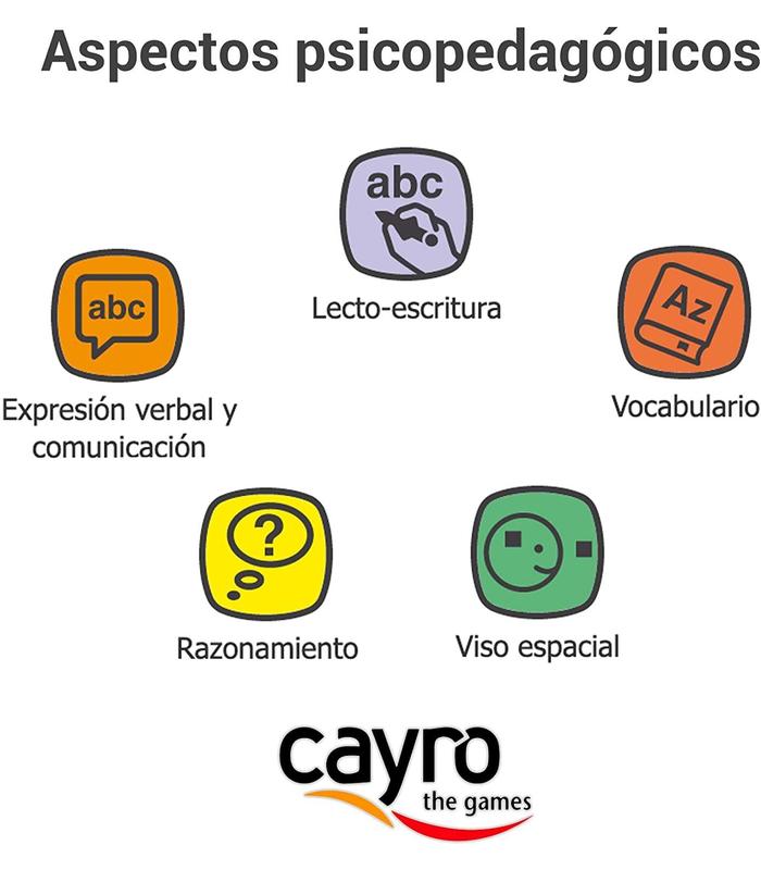 COMPONENTES: 1 Tablero, 102 fichas de letras , 22 tarjetas - EDAD: +4 años NIVEL: Infantil 5 años, primaria.