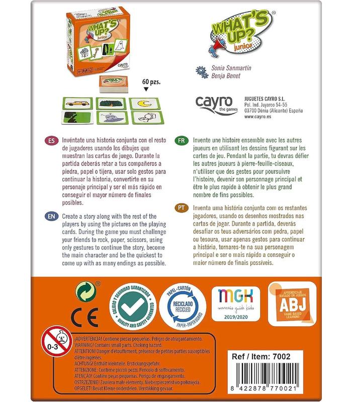 PARA NIÑOS: What''s Up? Junior es un juego infantil de cartas de la marca Cayro. Este juego es ideal para niños y niñas a partir de 5 años y está diseñado para desarrollar habilidades cognitivas y múltiples inteligencias en los pequeños mientras se divierten jugando.