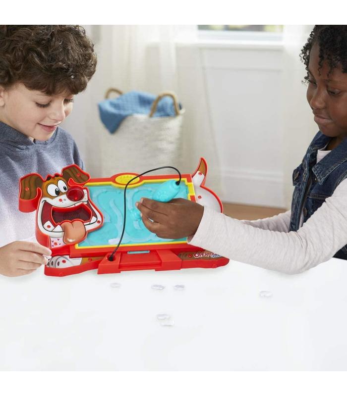¡Oh, oh! El perro de Sam, Rayo Ekis, se ha comido un montón de cosas que no debería como papeles, calcetines, zapatillas de conejito y un hueso. Los jugadores intentarán hacer que se sienta mejor al sacárselas. Suelta una dolencia en la boca del perro y utiliza el «Can-o-scopio» magnético para guiarla a través de su barriga... ¡Con la esperanza de que salga por la cola! Pero... ¡Atento al zumbido! Si el timbre suena, la dolencia se cae. Si se cae fuera de la barriga, el jugador pierde su turno. Cada dolencia que salga con éxito cuenta como un punto y el jugador con mayor puntuación ganará. Los niños estarán entretenidos durante todo el juego gracias a los efectos de sonido. Mantén presionada la nariz del perrito para escuchar sus ladridos y peditos. Para niños a partir de 6 años.