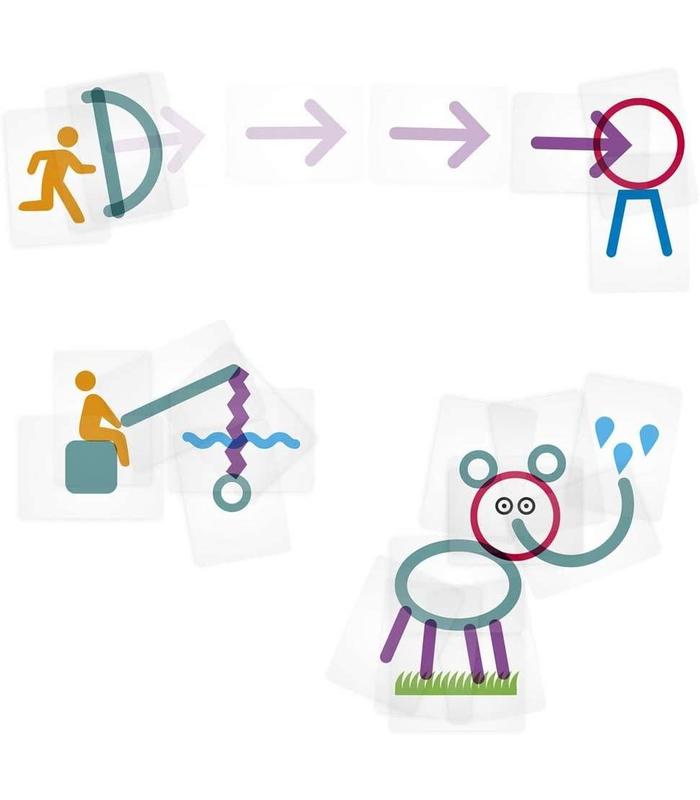 Diviértete adivinando animales, objetos, profesiones; con 60 cartas transparentes estimula la creatividad y la imaginación