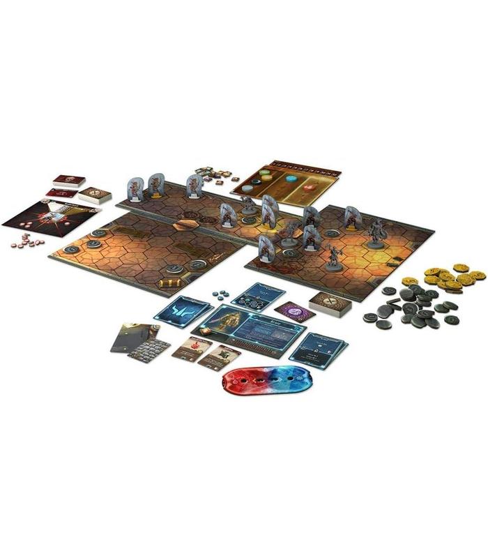 1 Tablero de Mapa, 17 Blocs de Personajes, 236 Monstruos de cartón, 32 Fichas de Invocación, 6 Discos de Elementos de Madera, 1 Bloc de notas, 232 Cartas de Habilidad de Monstruo, 30 Fichas de mapa de 2 caras, 60 Fichas de estado, 3 sobres cerrados, 1 Tablero de Infusión Elemental, 35 Cajas de Personajes, 155 Fichas de superposición de dos caras, 4 Hojas de adhesivos, 85 Fichas de personajes, 24 Peanas de plástico y 1 Marcador de Ronda.