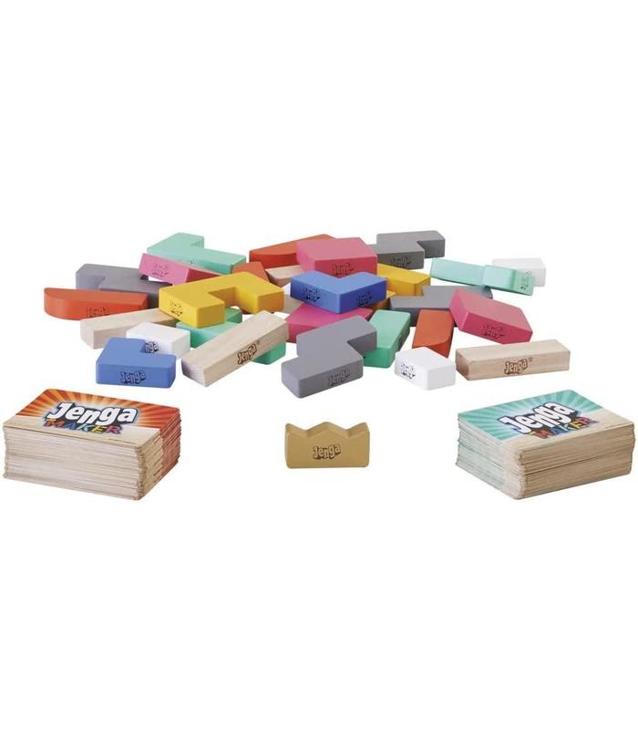 IDEAL PARA JUGAR EN FIESTAS: ¡Anima la fiesta con Jenga Maker! Esta versión del clásico juego de apilar torres es ideal para una noche de juegos en familia. Es un divertido juego para adultos y niños a partir de 8 años