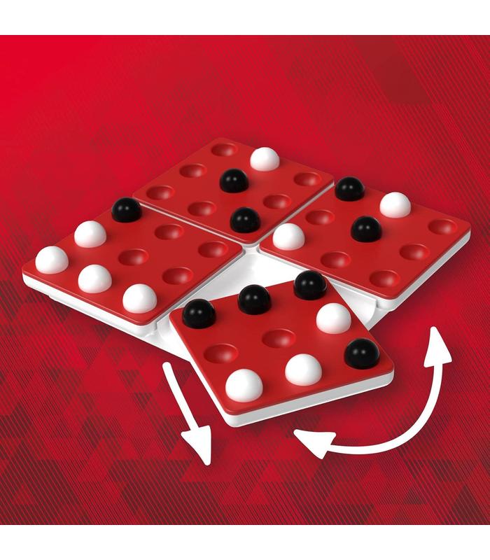 ¡GIROS SORPRENDENTES! No solo tendrás que colocar tus canicas en los espacios disponibles, ¡también deberás girar uno de los cuatro cuadrados en tu turno! ¡Cada giro puede cambiar completamente la partida!