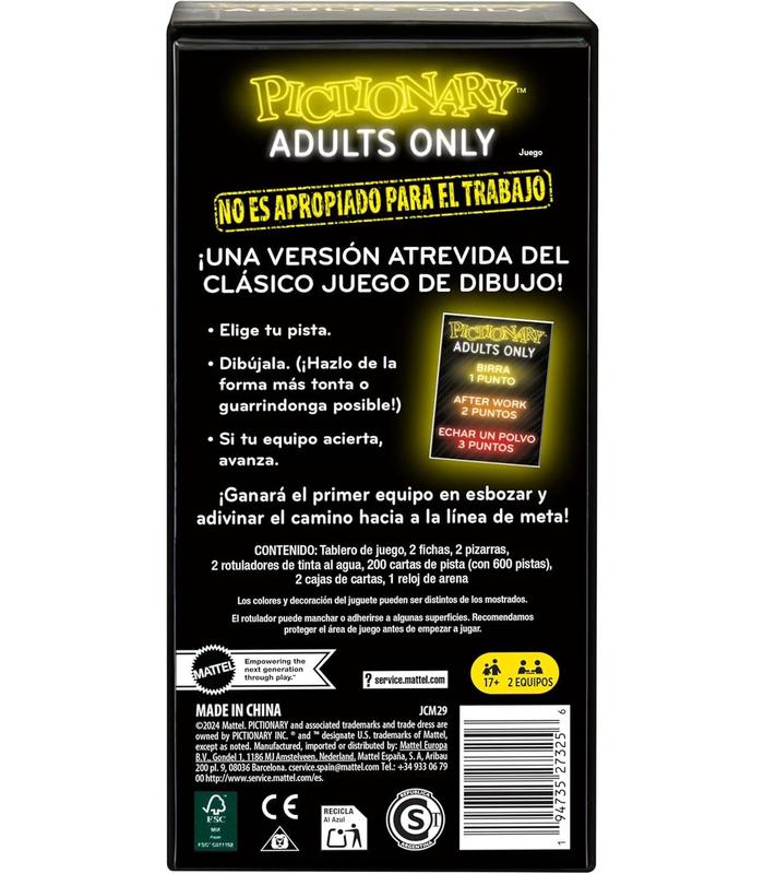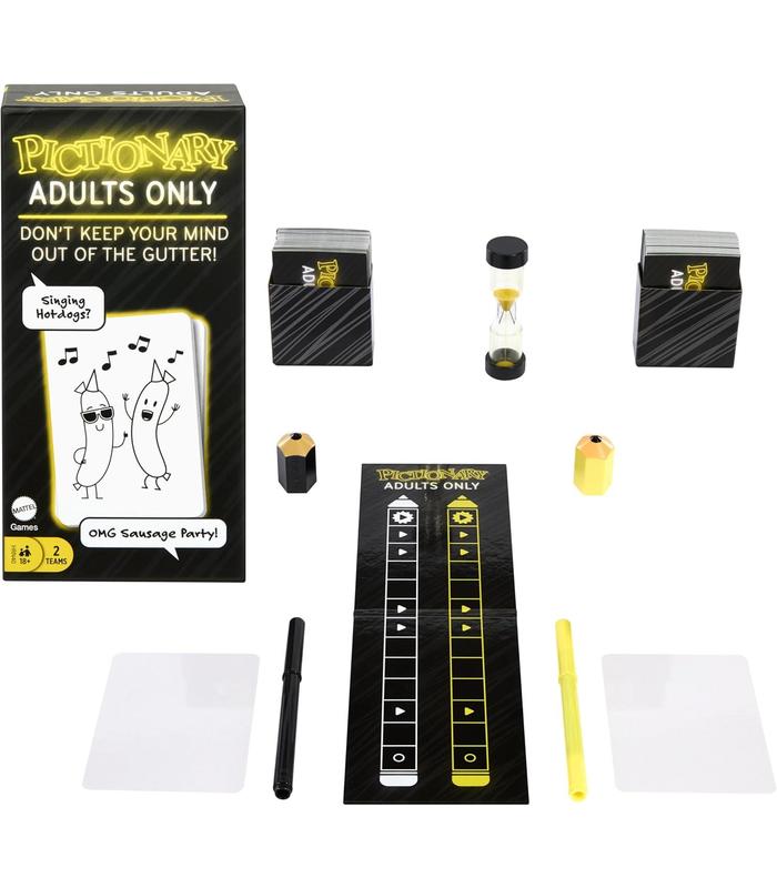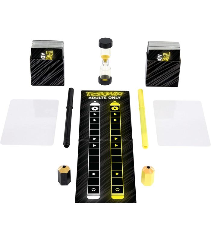Pictionary Para adultos es un juego de mesa muy gracioso y descarado para adultos en el que los jugadores dibujan garabatos divertidos para adivinar pistas atrevidas.