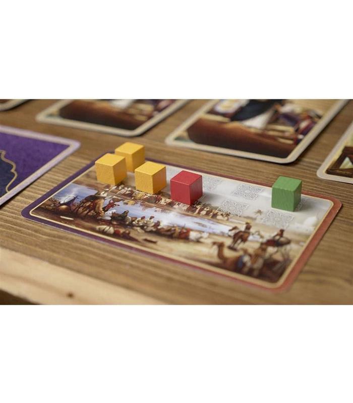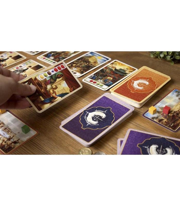 Descubre la belleza de la Ruta de las Especias y sus coloridos mercados de la mano de la increíble obra de la artista internacional Fernanda Suárez. Pon a prueba tu mente con este juego que combina una mecánica muy sencilla con un sistema de construcción de mazos y que te envolverá en un sinfín de estrategias y decisiones.