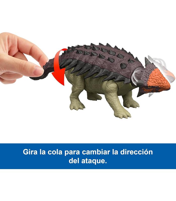 ¡Ataque y rugido! Este juguete de Anquilosaurio Rugido salvaje, inspirado en la película “Jurassic World: El Renacer”, presenta un ataque agresivo en múltiples direcciones y un feroz rugido con los que representar emocionantes batallas y persecuciones.