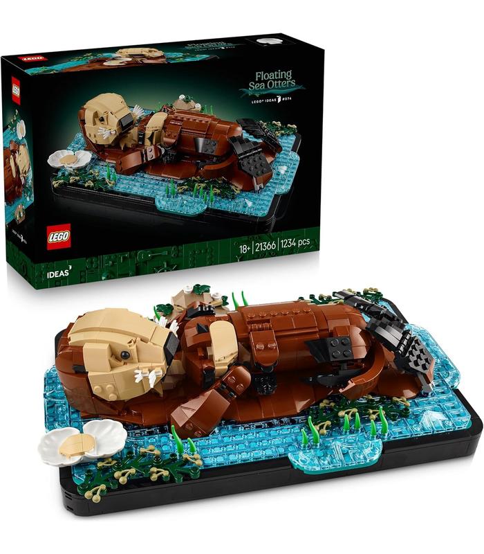 ADORABLE DECORACIÓN PARA EL HOGAR: Capta la ternura, la calma y el amor mutuo de 2 animales marinos con este kit de manualidades para adultos LEGO Ideas Nutrias Marinas a Flote