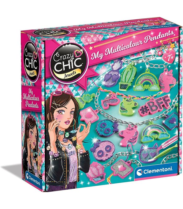 El juego contiene cadenitas y anillos de metal, colgantes con un diseño moderno y llamativo, cordón multicolor y purpurina de colores.
