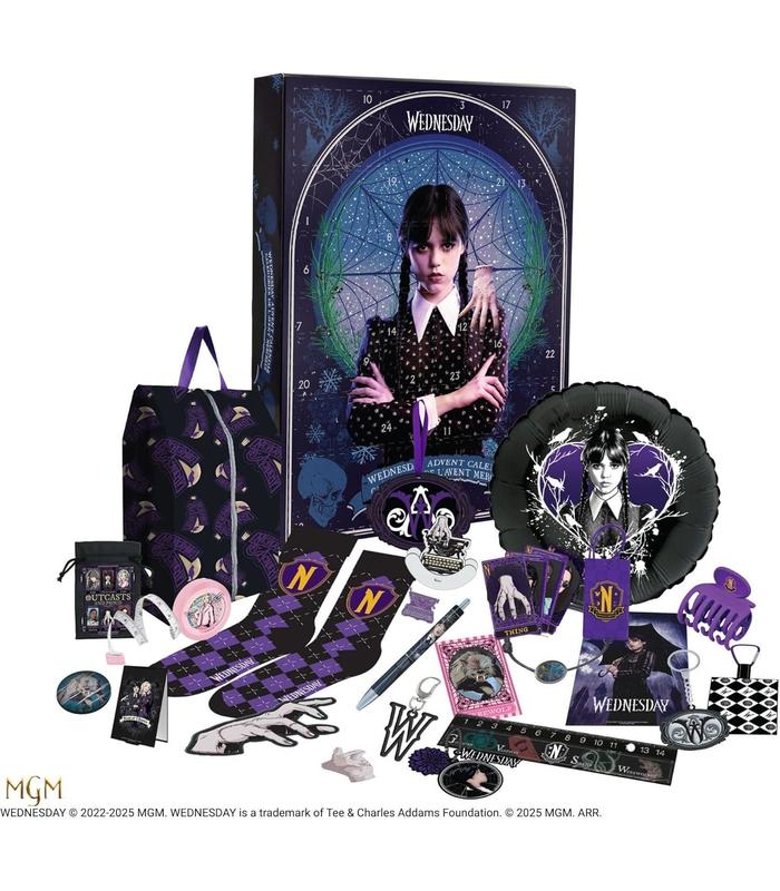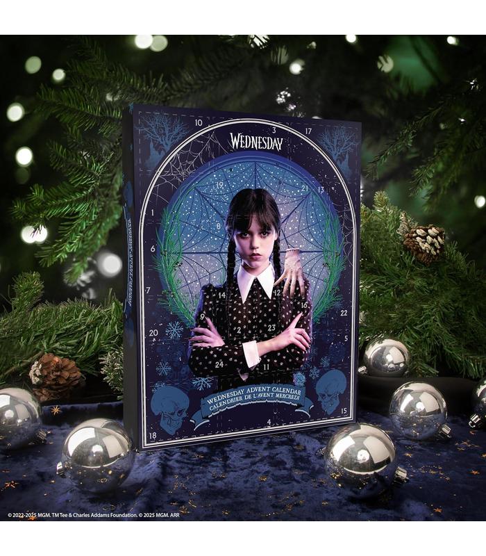 ENTRAR EN LA ACADEMIA DE NEVERMORE Y EN EL MUNDO DEL MIérCOLES ADDAMS: Para una Navidad con los colores de Miércoles Addams, sumérgete en el encanto de este Calendario de Adviento. Revela 24 regalos deliciosos que evocan el aterrador y misterioso universo de la serie, y enciende la magia de las fiestas de fin de año.