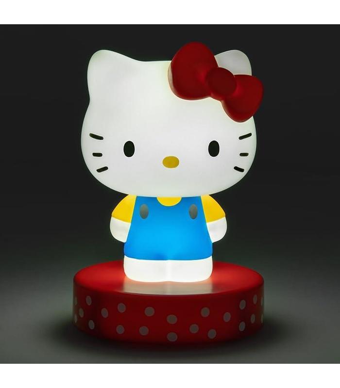 Ilumina tu espacio con la Lámpara Hello Kitty Sanrio, un artículo encantador para los amantes de esta icónica gatita. Con un diseño de 11 cm de altura, muestra a Hello Kitty en su clásico mono azul con camiseta amarilla, coronada por su inconfundible lazo rojo. La base roja con lunares blancos añade un toque adorable y retro.
