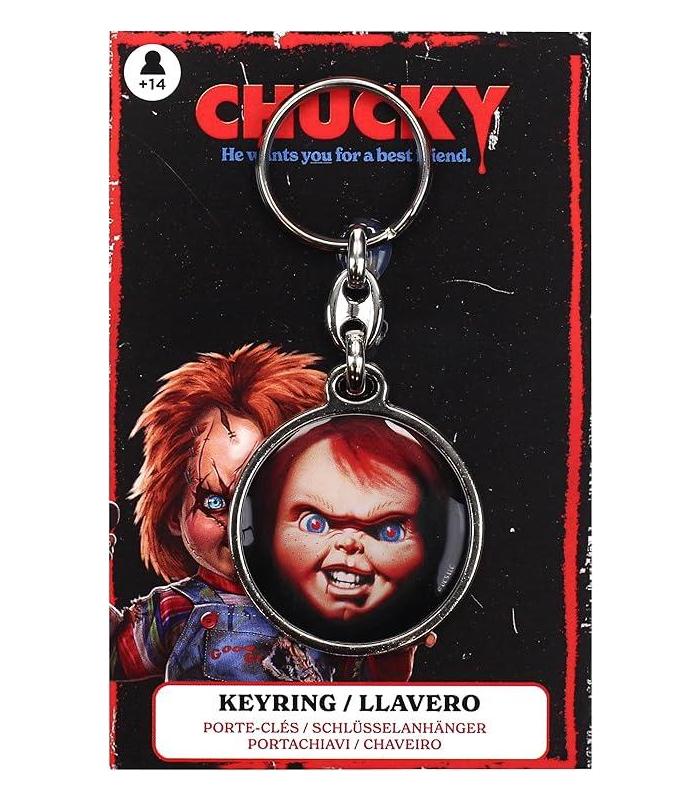 Llavero Redondo Metal Chucky Los llaveros más "terroríficos" con tus personajes míticos del cine y televisión Este llavero metálico presenta a Tiffany, la icónica novia de Chucky, Un accesorio ideal para los seguidores de esta legendaria saga de terror