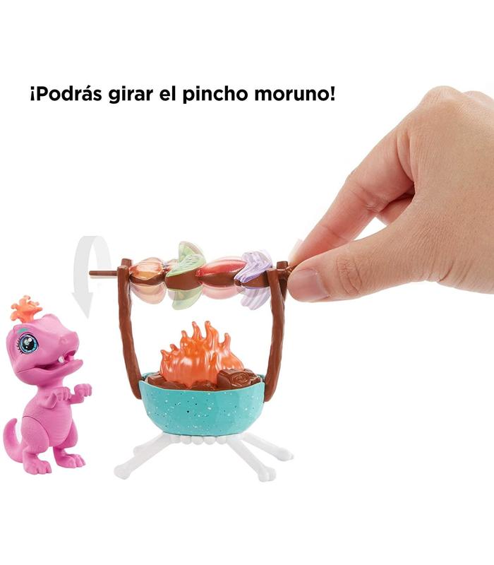 ¡Conoce a Cave Club, un grupo de amigos prehistóricos muy revoltosos y adelantados a su época! Con las muñecas y conjuntos de juego de Cave Club, los niños volverán al pasado y se embarcarán en aventuras épicas con sus personajes prehistóricos favoritos, como Emberly. Emberly descubrió el fuego, así que es normal que sea ella quien celebre la primera barbacoa de la historia. Con este conjunto de aventuras, los niños podrán ayudar a Emberly y a su dinosaurio mascota, Flaire, a cocinar todo tipo de historias. Una hoguera y un asador giratorio iniciarán las aventuras; coloca una pieza de comida sobre las llamas y gira para "asarla". Sube el volumen de la radio; gírala para para ver a los pájaros tocando el tambor. Después, ponte a cocinar con la bandeja para servir, la sartén y las piezas de comida, como un pinchito, una pieza de barbacoa y un huevo que los niños podrán "cascar" de verdad. ¡Transporta a los niños a los albores de la civilización y descubrirán nuevas historias salvajes con los juguetes de Cave Club! Los aventureros a partir de 4 años podrán coleccionar las muñecas y juguetes de Cave Club para crear historias con toda la pandilla. Se venden por separado y están sujetos a disponibilidad. Los colores y la decoración pueden ser distintos de los mostrados.