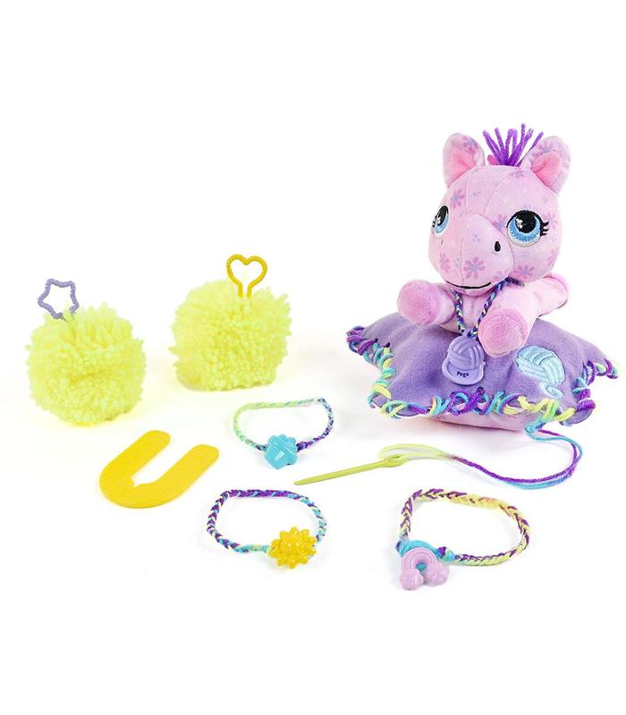 Cose su camita, hazle un collar, hazte pulseras y collares y utiliza el instrumento de pompones para colgarlos donde quieras con los clips