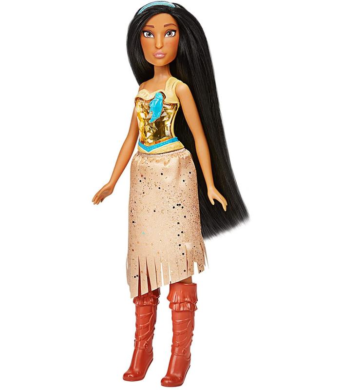 FALDA Y ACCESORIOS A LA MODA. La muñeca de Pocahontas Royal Shimmer incluye falda, botas y tiara con matices de sus característicos colores