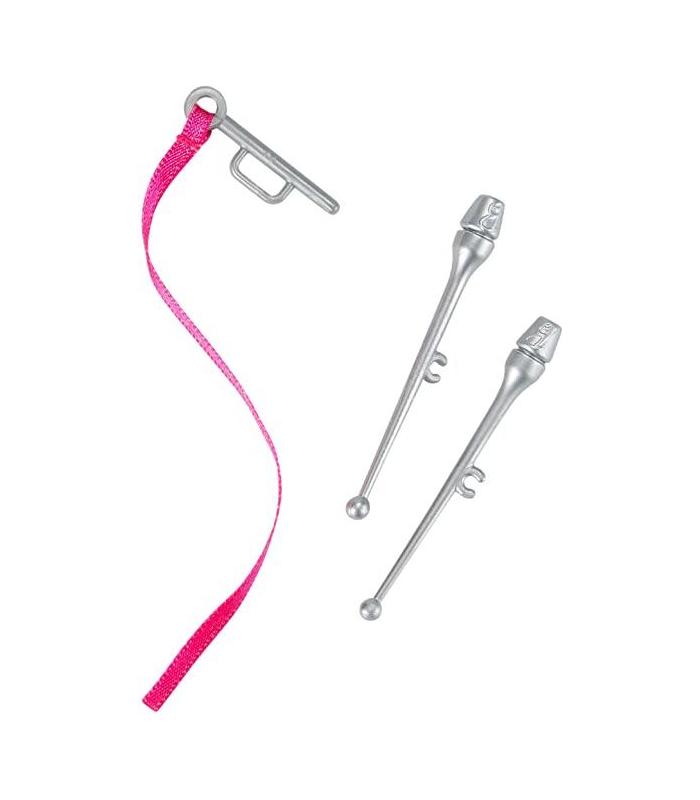 La muñeca Barbie Gimnasta rítmica puede sujetar las mazas y la cinta para participar en actuaciones increíbles y realistas.