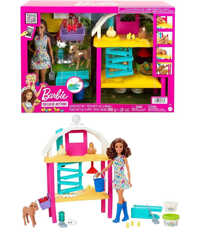 Las niñas pueden explorar la diversión del mundo agrícola con el conjunto de juego Barbie Hatch & Gather Egg Farm.
