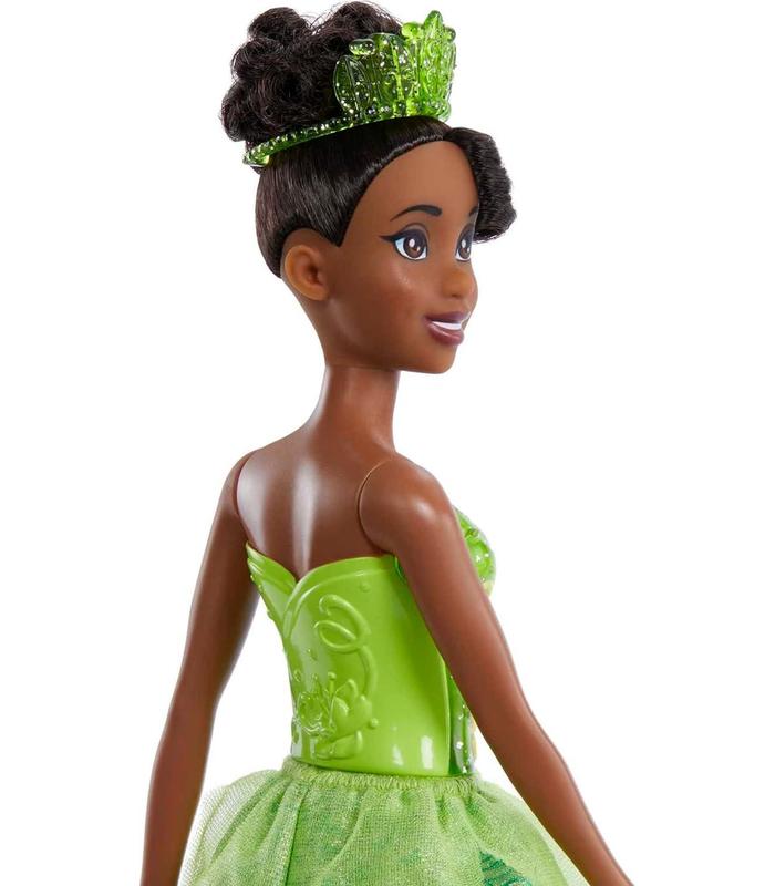 Inspirada en el personaje animado de la aclamada película de Disney, Tiana y el sapo, esta muñeca de Tiana está lista para conseguir que sus sueños se hagan realidad