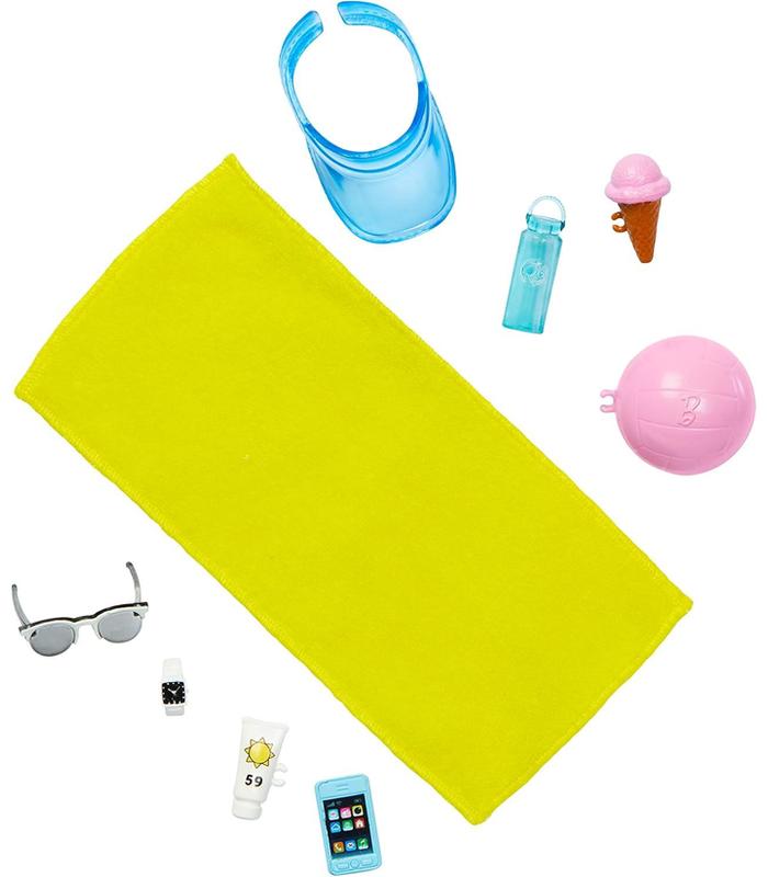 La pelota de playa es perfecta para jugar con sus amigos, mientras que el cono de helado se engancha a su mano para posar de forma realista.