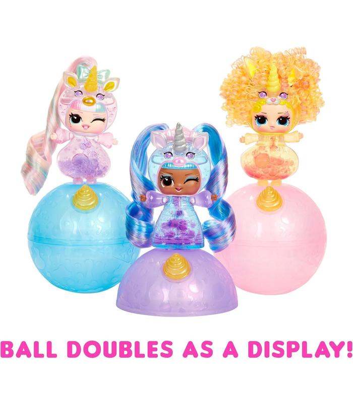 EXPERIENCIA CON LA LÁMPARA DE LAVA: Cada bola incluye 1 Unicorn Tot y 2 "pociones" de colores para verter en la peque, proporcionando una sensación de lámpara de lava con manchas de colores deslizándose unas junto a otras dentro de la muñeca