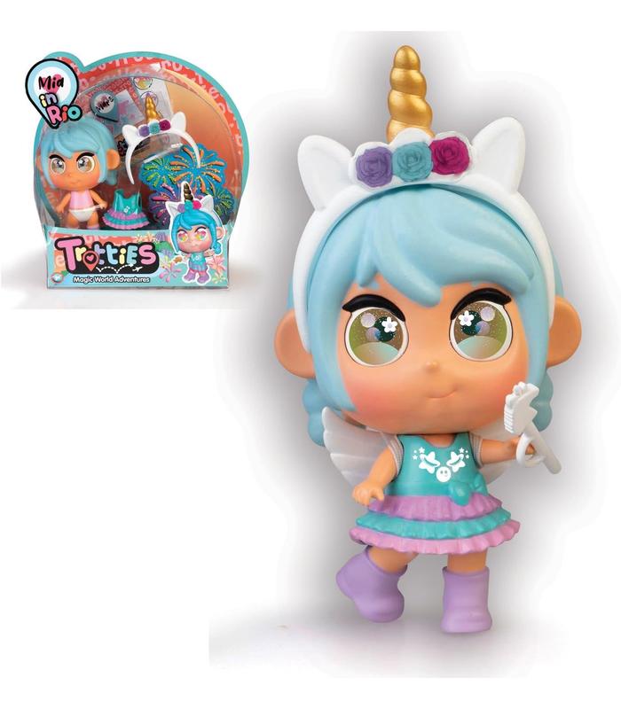 Juega con Mini Mia de Rio: uno de los tres nuevos Mini Trotties listos para aventuras mágicas del mundo. Muñeca articulada Mini Mia de Rio de 10 cm con ropa y accesorios originales como en la serie. El tamaño perfecto para cualquier ocasión, ya sea escuela, viajes o uso diario