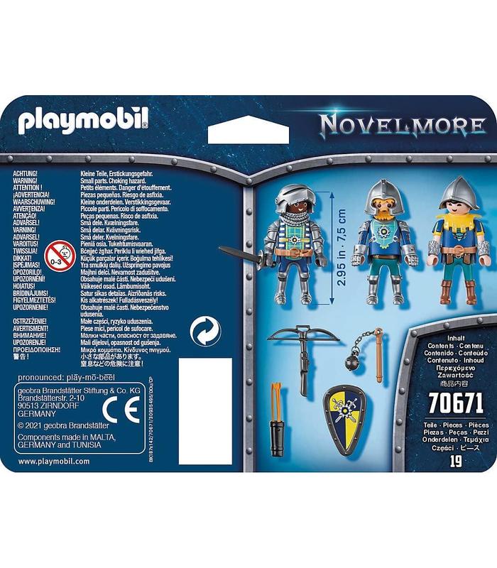 Contenido: 1x PLAYMOBIL Set de 3 Caballeros de Novelmore, Juego de 19 piezas con instrucciones: 3 figuras, 16 accesorios, Material: plástico, Se puede montar individualmente, Peso: 50 g, 70671