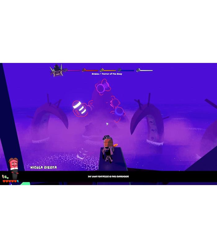 Además de los sombreros de hongos disparados, la diversión del juego la brindan diálogos hilarantes, una banda sonora electrónica y una trama llena de símbolos de la cultura pop humana.