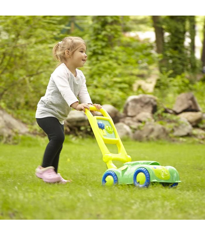 Hecho de materiales duraderos; con la cara sonriente de Snappy, se trata de una cortadora de césped. Es ideal para el juego interior o al aire libre. Tiene un asa resistente como para ayudar a los nuevos caminantes, y fomentará el desarrollo de habilidades motoras, las actividades de juego de roles, y una exploración del mundo natural