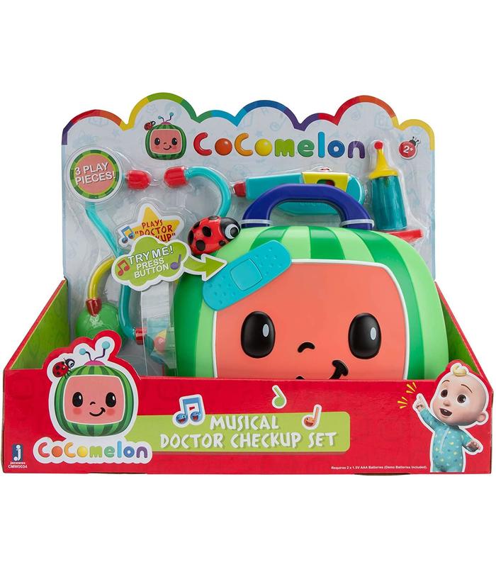 ¡Juega a ser médico con el maletín de doctor musical de CoComelon! Este maletín de doctor musical para niños está inspirado en los populares episodios de la famosa y educativa serie CoComelon. El encantador maletín de doctor dispone de 9 sonidos divertidos y reproduce la canción "Doctor Checkup" para cantar. Tu pequeño puede controlar su corazón con el estetoscopio, la temperatura con el termómetro y darle una inyección indolora con la jeringa.. Tu pequeño pediatra puede empujar el termómetro de rojo a verde e incluso presionar el émbolo de la jeringa hacia abajo. El maletín tiene la forma del famoso logotipo de CoComelon, donde podrás guardae todos los utensilios médicos. Dale vida a la serie con el fantástico maletín de doctor de CoComelon y trae diversión a la habitación de los niños. Contiene: 1 maletín CoComelon, 1 estetoscopio, 1 jeringuilla, 1 termómetro. Necesita 2 pilas AA (pilas de demostración incluidas)