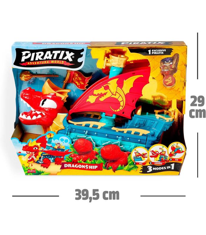 ¡DESCUBRE EL BARCO DRAGÓN DE PIRATIX! – ¡Ojo a babor! Llega el Dragon Ship, el único vehículo Piratix que puede ir por tierra, mar y aire: ¡el aliado perfecto para hacerse con el tesoro de Jungle Island!