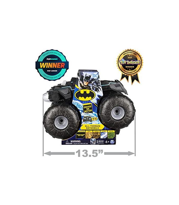 COCHE TELEDIRIGIDO BATMAN IMBATIBLE EN CUALQUIER TERRENO: el coche radiocontrol 4x4 Batmobile en escala 1:15 con control remoto persigue a los supervillanos sobre cualquier tipo de terreno. Agua, nieve, barro, piedras, césped... Pertenece a la gama de coches teledirigidos para niños que nada puede detener